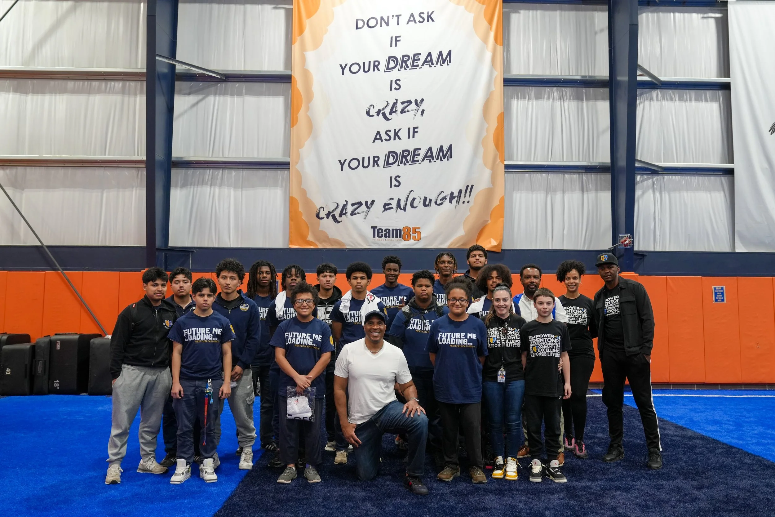 Foundation Academy Collegiate Scholars with retired NFL player Kevin Johnson, CEO and Leader of Team85 in Bordentown